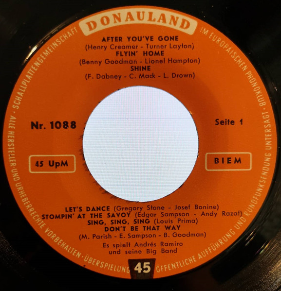 Vinyl / Andrés Ramiro Und Seine Big Band* - After You've Gone / Moonlight Serenade
