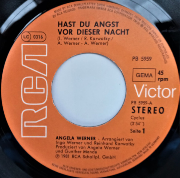 Vinyl / Angela Werner - Hast Du Angst Vor Dieser Nacht / Du Siehst So Bleich Aus