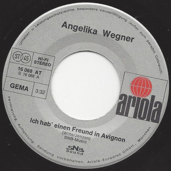 Vinyl / Angelika Wegner - Ich Hab' Einen Freund In Avignon