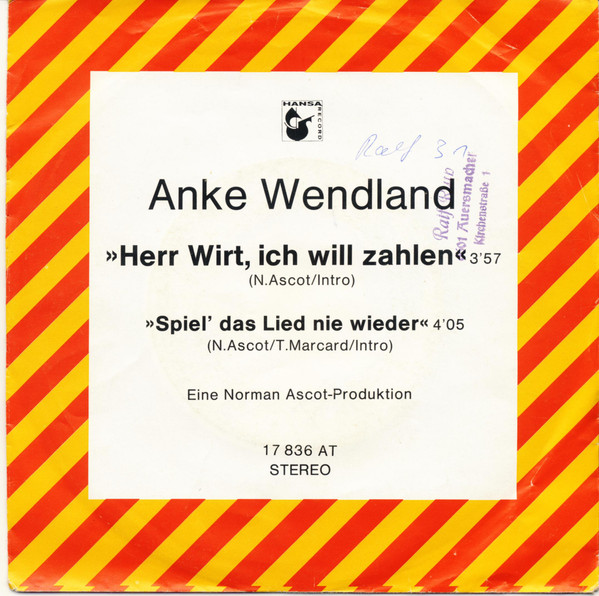 Vinyl / Anke Wendland - Herr Wirt, Ich Will Zahlen