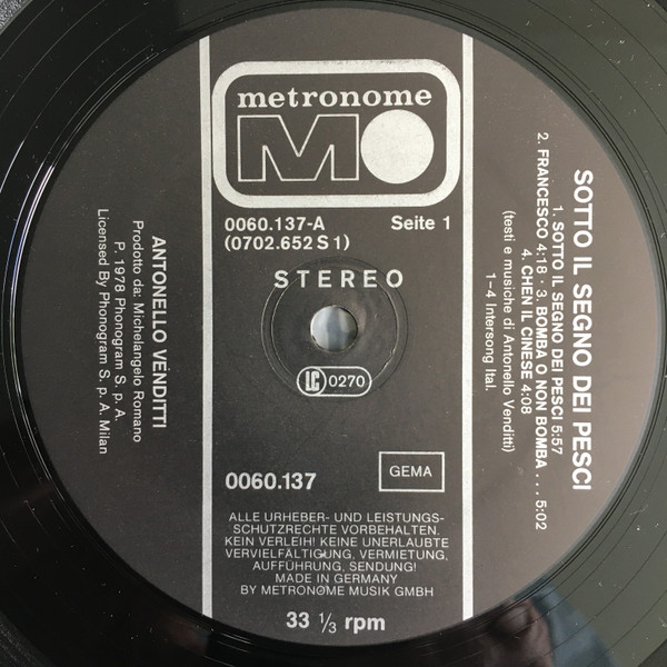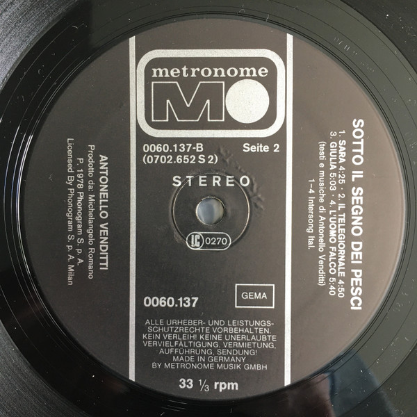 Vinyl / Antonello Venditti - Sotto Il Segno Dei Pesci