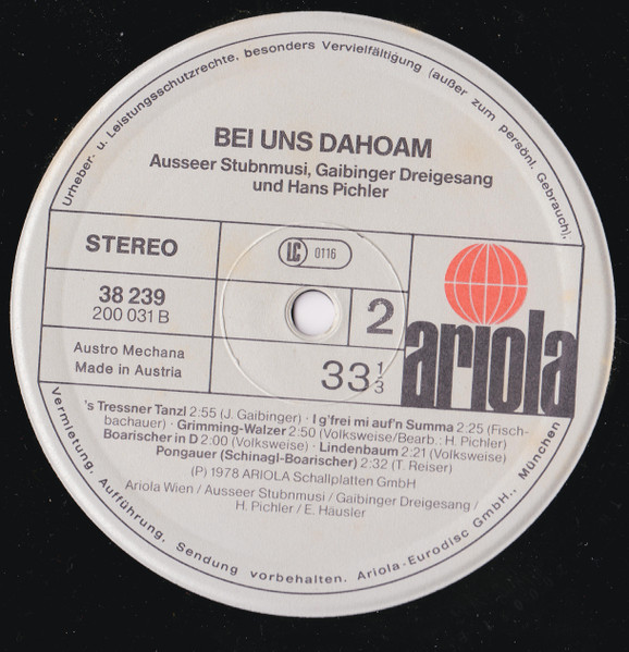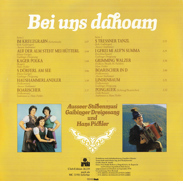 Vinyl / Ausseer Stubenmusi, Gaibinger Dreigesang, Hans Pichler - Bei Uns Dahoam