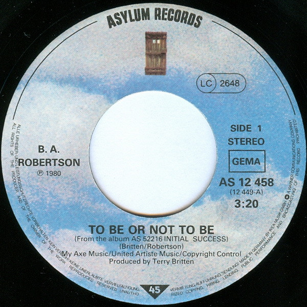 Vinyl / B.A.Robertson* - To Be Or Not To Be