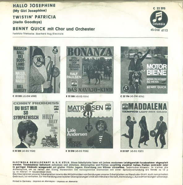 Vinyl / Benny Quick - Hallo Josephine
