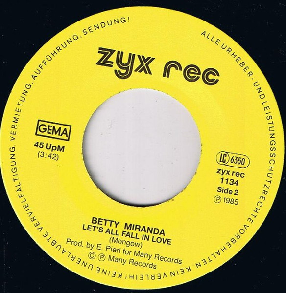 Vinyl / Betty Miranda - Dance / Let's All Fall In Love