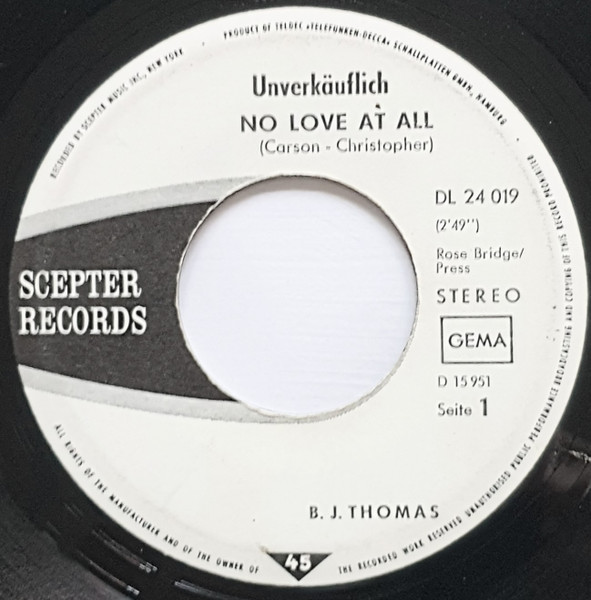 Vinyl / B.J. Thomas - No Love At All / Bridge Over Troubled Water