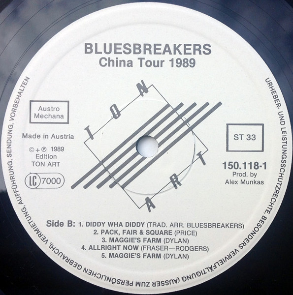 Vinyl / Blues Breakers* = 布鲁斯激浪* - China Tour 1989