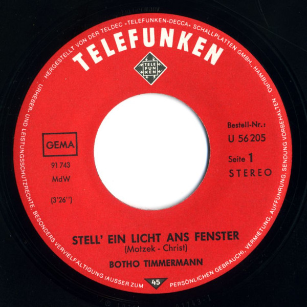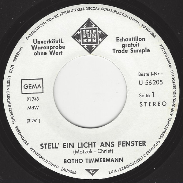 Vinyl / Botho Timmermann - Stell' Ein Licht Ans Fenster / Ohne Dich