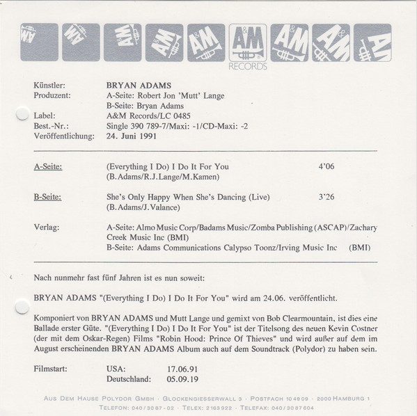 Vinyl / Bryan Adams - (Everything I Do) I Do It For You