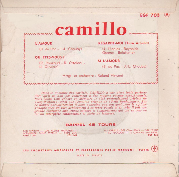 Vinyl / Camillo* - L'Amour / Ou Etes-Vous / Regarde-Moi / Si L'Amour