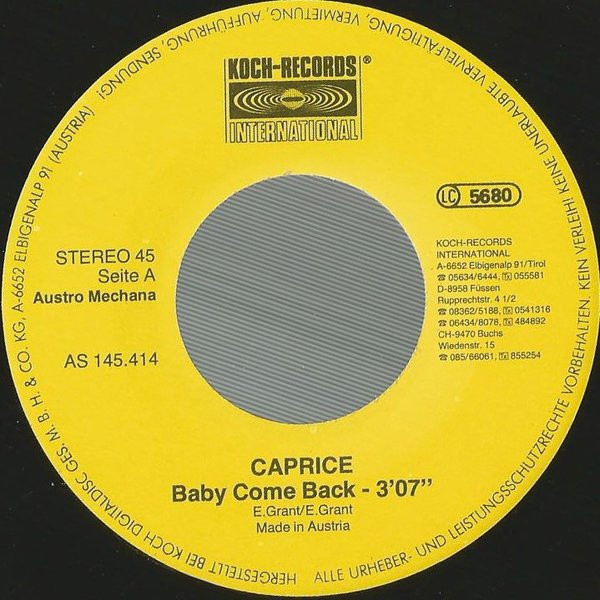 Vinyl / Caprice (15) - Baby Come Back