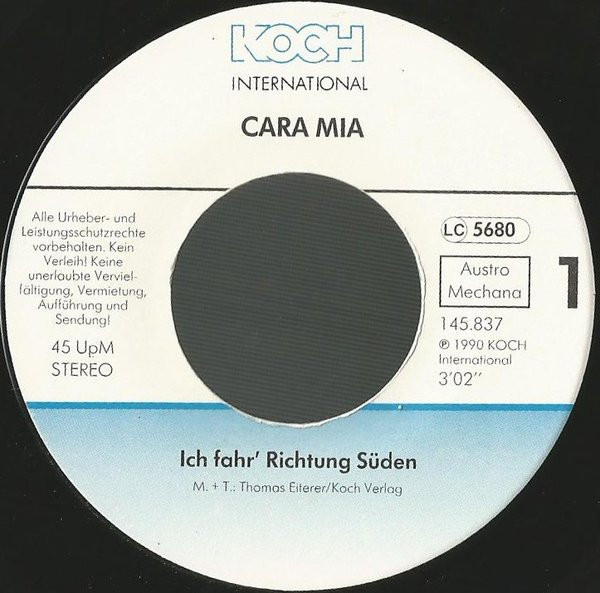 Vinyl / Cara Mia - Ich Fahr' Richtung Süden