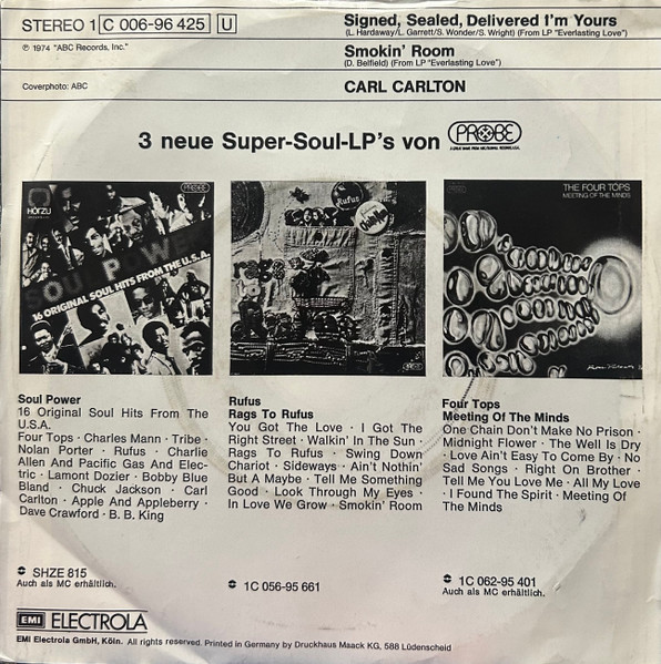 Vinyl / Carl Carlton - Signed, Sealed, Delivered, I'm Yours / Smokin' Room