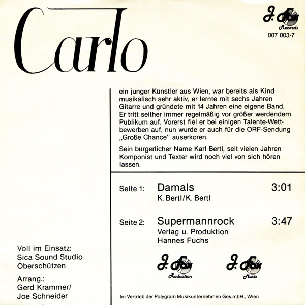 Vinyl / Carlo* - Damals / Supermannrock
