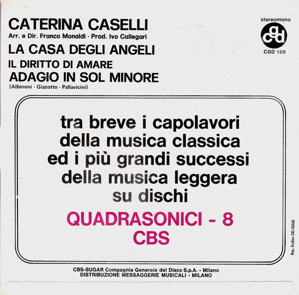Vinyl / Caterina Caselli - La Casa Degli Angeli / Adagio In Sol Minore