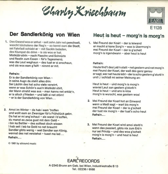 Vinyl / Charly Kriechbaum - Der Sandlerkönig Von Wien