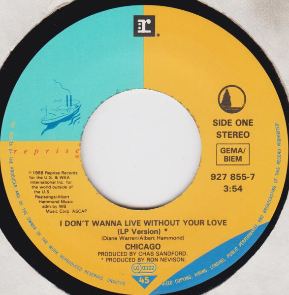 Vinyl / Chicago (2) - I Don't Wanna Live Without Your Love