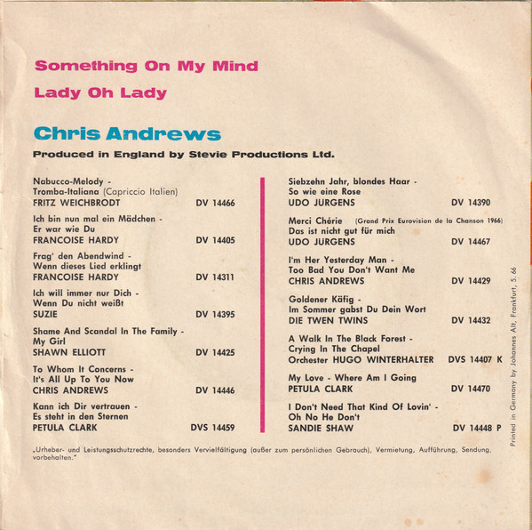 Vinyl / Chris Andrews (3) - Something On My Mind / Lady Oh Lady