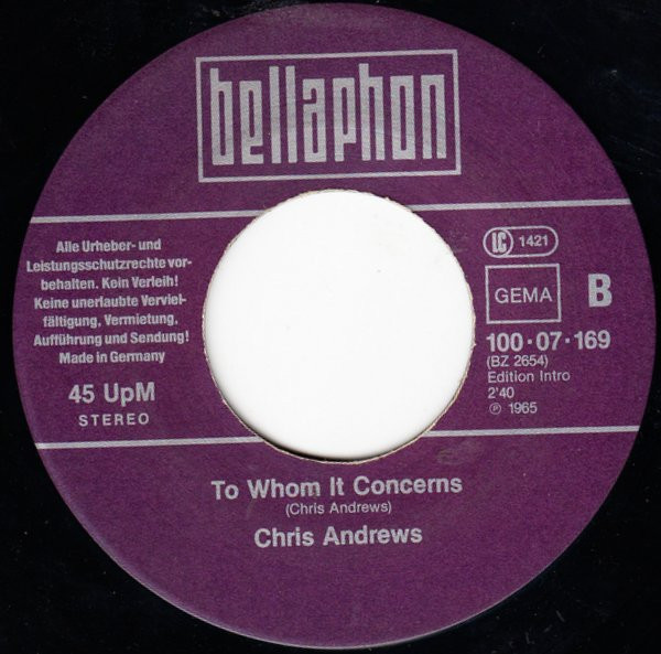Vinyl / Chris Andrews (3) - Yesterday Man / To Whom It Concerns