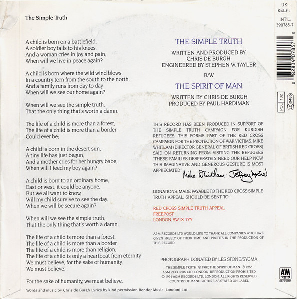 Vinyl / Chris de Burgh - The Simple Truth (Campaign For Kurdish Refugees)