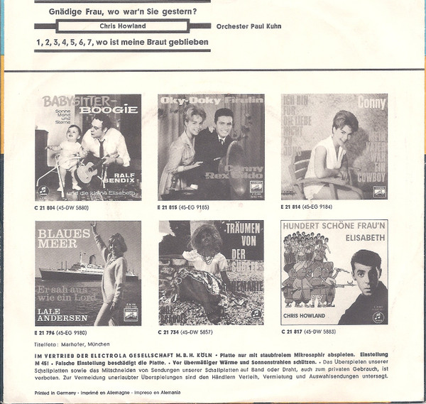 Vinyl / Chris Howland - Gnädige Frau, Wo War'n Sie Gestern???