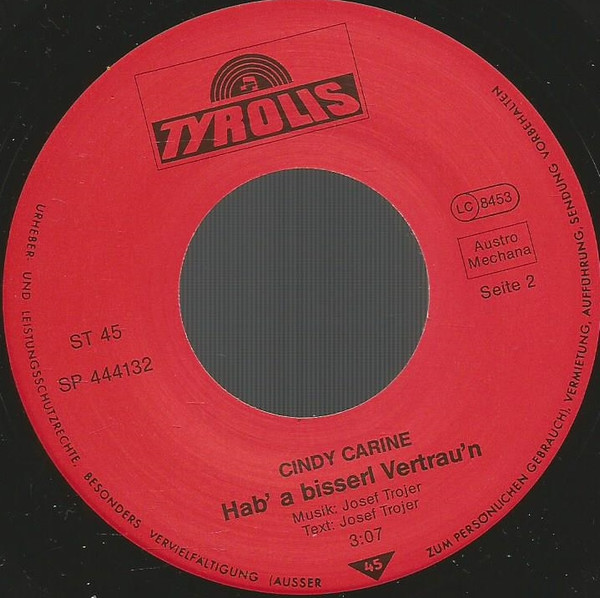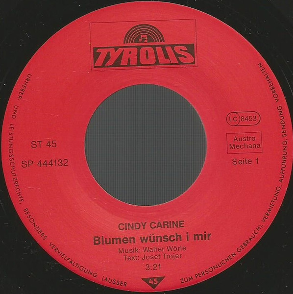 Vinyl / Cindy Carine - Blumen Wünsch' I Mir / Hab' A Bisserl Vertau'n