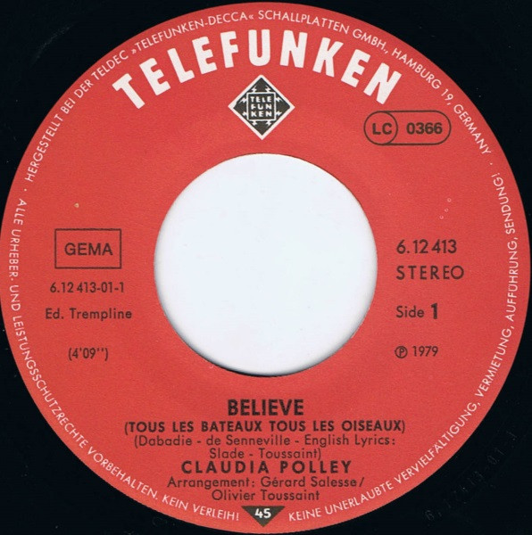 Vinyl / Claudia Polley - Believe (Tous Les Bateaux Tous Les Oiseaux)