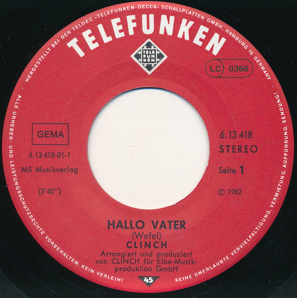 Vinyl / Clinch - Hallo Vater / Nachts, Wenn Der Schienenpfleger Kommt