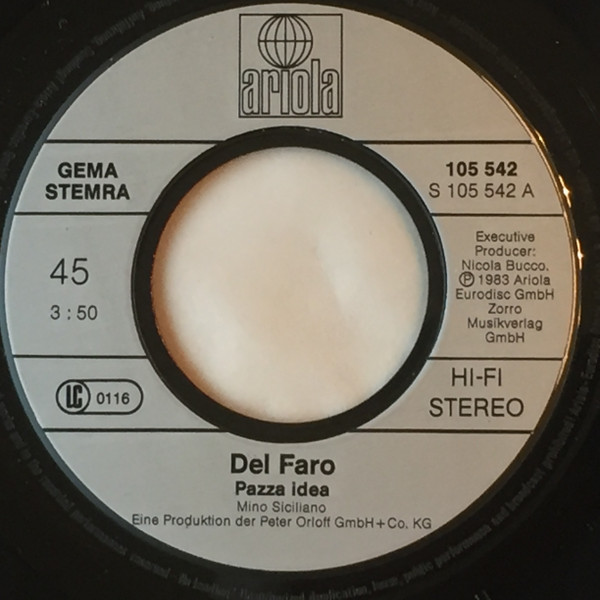 Vinyl / Del Faro - Pazza Idea / Sempre Tu