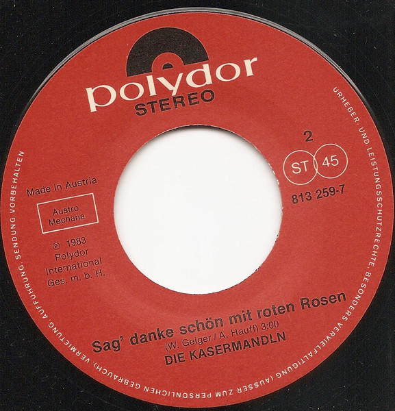 Vinyl / Die Kasermandln* - 's Betthupferl / Sag' Danke Schön Mit Roten Rosen