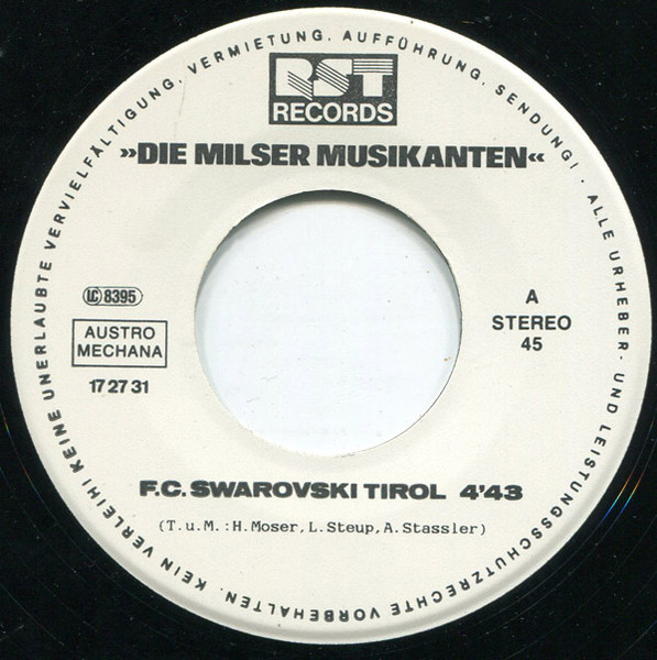 Vinyl / Die Milser Musikanten* - F. C. Swarovski Tirol