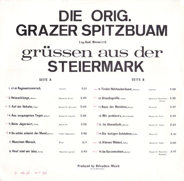 Vinyl / Die Orig. Grazer Spitzbuam* Ltg.: Rudi Neuwirth (2) - Grüsse Aus Der Steiermark