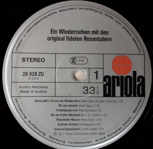 Label: Ariola - Cat#: 28 928 ZU