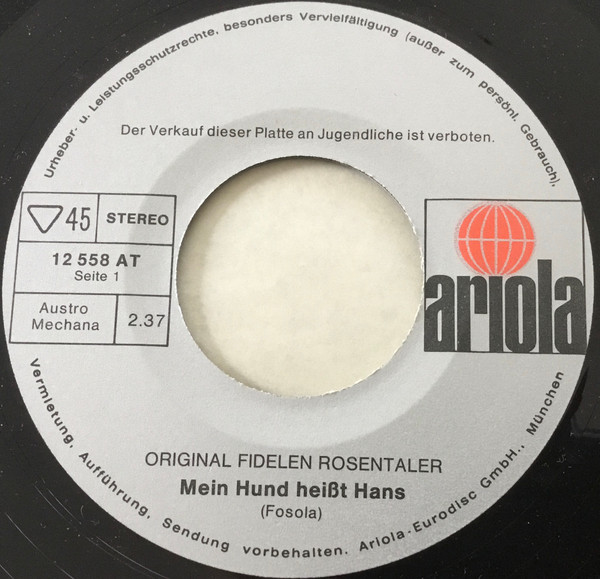 Vinyl / Die Original Fidelen Rosentaler - Mein Hund Heisst Hans