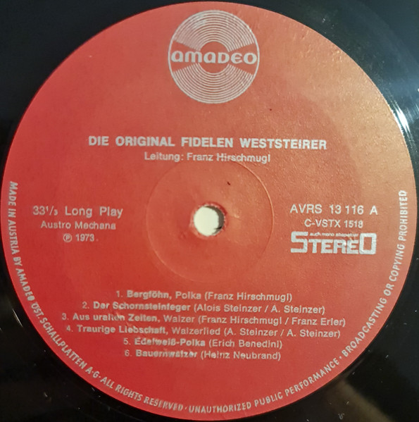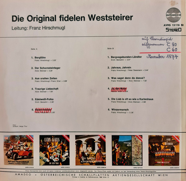 Vinyl / Die Original Fidelen Weststeirer - Die Original Fidelen Weststeirer