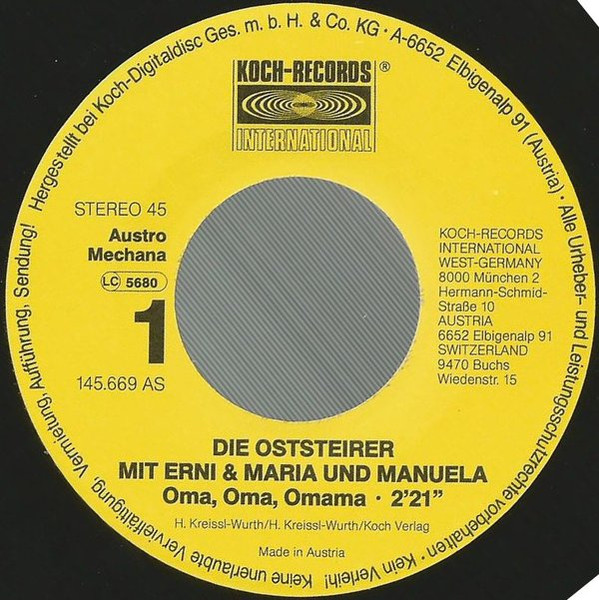 Vinyl / Die Oststeirer Mit Erni & Maria Und Manuela* - Oma, Oma, Omama / Das Jagerische Leben
