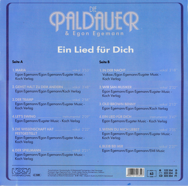 Vinyl / Die Paldauer & Egon Egemann - Ein Lied Für Dich