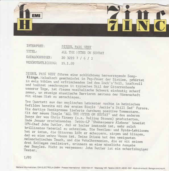 Vinyl / Diesel Park West - All The Myths On Sunday