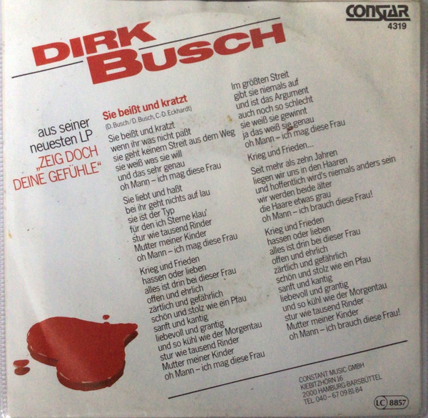 Vinyl / Dirk Busch - Sie Beißt Und Kratzt (Ich Brauche Diese Frau)