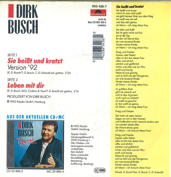 Vinyl / Dirk Busch - Sie Beißt Und Kratzt (Version '92)