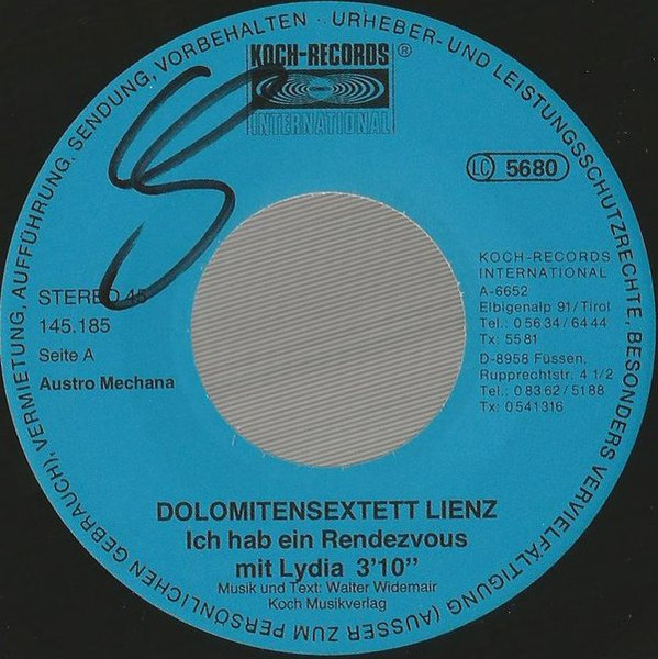 Vinyl / Dolomiten Sextett Lienz - Ich Hab Ein Rendezvous Mit Lydia