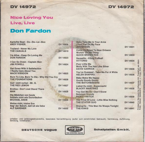 Vinyl / Don Fardon - Nice Loving You / Live Live