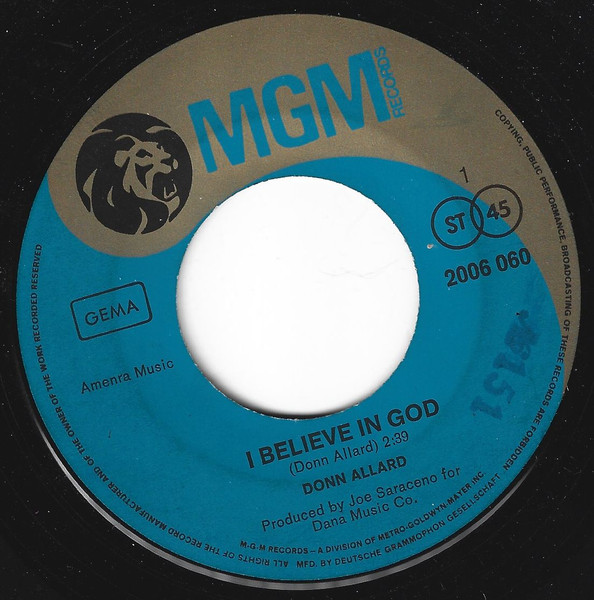 Vinyl / Donn Allard - I Believe In God / Just Once In A While