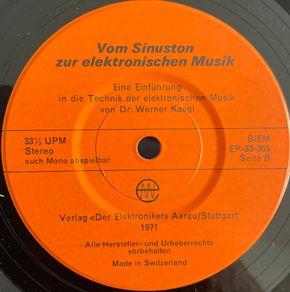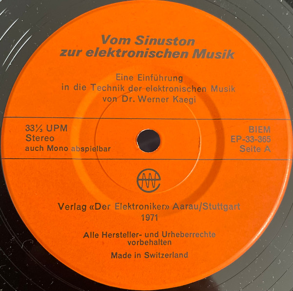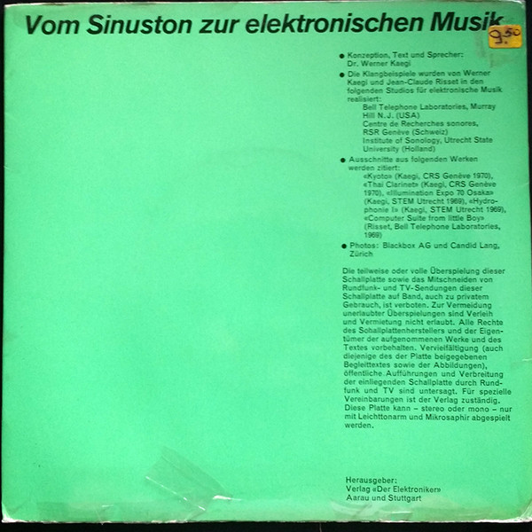 Vinyl / Dr. Werner Kaegi* - Vom Sinuston Zur Elektronischen Musik