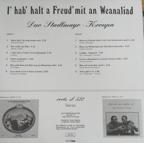 Vinyl / Duo Stadlmayr-Kroupa - I' Hab' Halt A Freud' Mit An Weanaliad