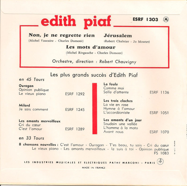 Vinyl / Edith Piaf - Non, Je Ne Regrette Rien