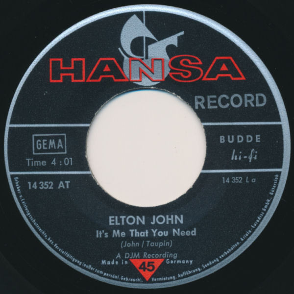 Vinyl / Elton John - It's Me That You Need / Just Like Strange Rain