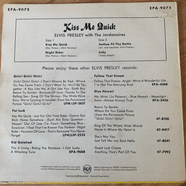 Vinyl / Elvis Presley - Kiss Me Quick