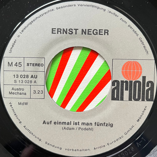 Vinyl / Ernst Neger - Auf Einmal Ist Man Fünfzig / Alter Schützt Vor Torheit Nicht