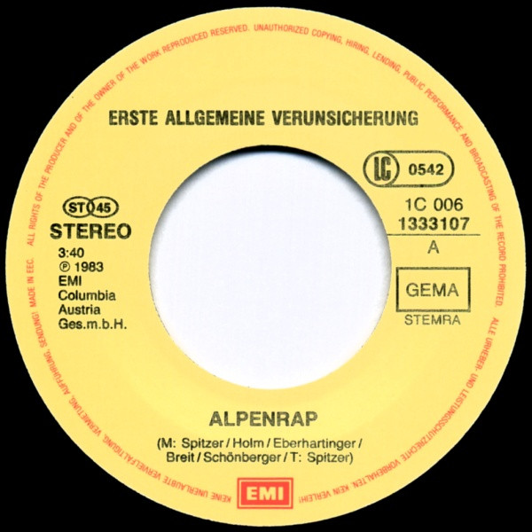 Vinyl / Erste Allgemeine Verunsicherung* - Der Alpen-Rap